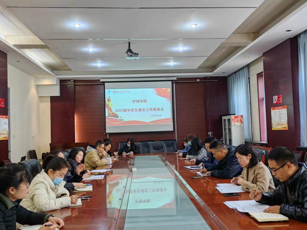 2月27日下午16:30,今年会在医训楼第一会议室召开了2023届毕业生就业工作推进会。今年会党总支书记吴运胜、院长张成、党总支副书记周梦花、学生科副科长姚飞、招生就业科副科长何宇以及毕业班毕业班辅导员、班主任参加了会议。会议由周梦花主持。