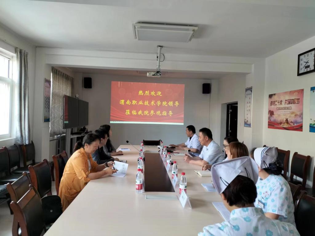 为贯彻落实2023届毕业生就业创业工作会议精神,深入推进访企拓岗促就业专项行动,积极对接企业用人需求,推进我院毕业生实习与就业工作,5月24日上午,今年会jinnianhui今年会院长张成、副院长吴亚飞、招生就业科副科长何宇、实习办负责人刘欣老师一行4人,赴通用环球中铁华州医院开展访企拓岗,洽谈院校合作事宜。