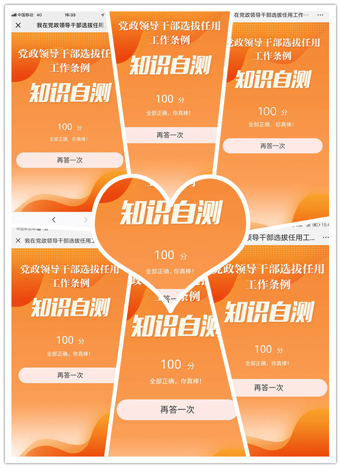 王剑、郭宇森、学生党支部组织委员乔欢分别带领全体党员通读了《党政领导干部选拔任用工作条例》全文。各支部书记要求党员干部深刻理解《条例》内容,重点领会新修订的《条例》中强调的突出政治标准、落实从严要求、激励担当作为、拓宽选用视野、体现精准科学、推动务实高效等6各方面的内容。各党支部组织全体党员以闭卷形式完成《条例》知识自测。我院党员干部认真学习《条例》内容,一个小时后,全部满分完成《条例》知识自测。