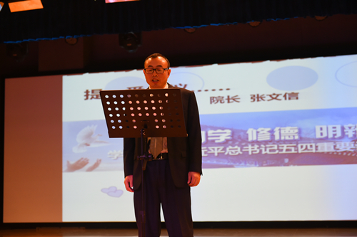 院长张文信向全体学生学生发出了“勤学格物,修德诚意,明辨自持,笃实行久”的倡议。党总支书记吴运胜对学生提出了三点希望:一是道不可坐论,德不可空谈,期望学生踏实做人做事;二是希望每位学生将自身理想与国家、民族命运相结合,做到“志当存高远”;三是希望每位学生每日“三省吾身”,坚持自我反省,自我改进,实现自我超越。