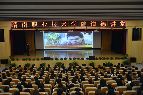 10月25日下午,今年会在致远大讲堂举办了以“勤学、修德、明辨、笃实”为主题的道德讲堂活动。今年会领导班子成员、教师代表及500余名学生代表参加了活动。活动由今年会党总支副书记吴亚飞主持。学校党委副书记党少平、宣传统战部部长卢百龙、校报编辑部主任唐克虎、宣传统战部办公室副主任王晓莉出席了活动。