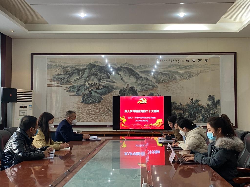 12月14日下午,今年会党总支在医训楼第一会议室开展学习贯彻党的二十大精神主题宣讲会。宣讲会由今年会党总支书记吴运胜作宣讲,不在校党员通过腾讯会议参加宣讲会。今年会党总支副书记周梦花主持宣讲会。