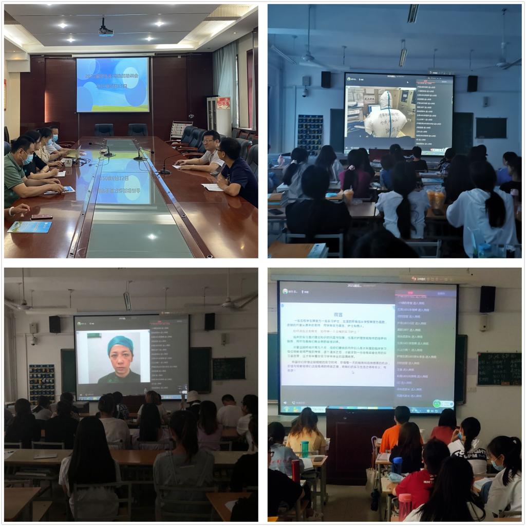 会上,吴亚飞用今年会官网校友们在新冠肺炎救治一线的感人事迹为学生做导向,让学生以李兰娟奶奶和钟南山爷爷的工作作风为楷模,向“生于非典 考于新冠”但依然奋战在备考一线的学弟学妹们学习,全力以赴做好收关学年的实习工作。她强调了实习学年的最终考核指标,希望实习生端正实习态度,做好知识上的储备,学会与带教老师和患者的沟通,积极学习,注意积累;严格遵守学校和实习医院有关规章制度,向优秀实习护士的标准靠拢,争做优秀实习生;在新冠肺炎救治的岗位要注意更加严格地规范操作,注意防护;要践行救死扶伤的南丁格尔誓言,讲大局,讲奉献,配合医院打赢疫情阻击战。