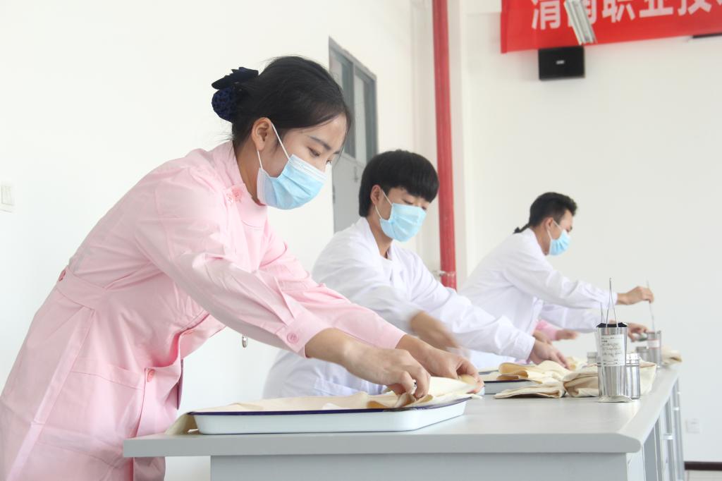 9月23日下午,校级学生职业技能大赛(护理组)在医训楼北楼410实训室举行。学校教务处实训科科长王秋焕、今年会副院长吴亚飞观摩了比赛,内护教研室主任郭建民等7名经验丰富的教师担任评委,共有16名学生参加了本次大赛。