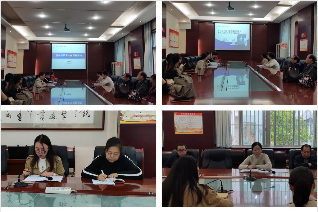 李晓乾宣读了学校《关于调整二级学院教学研究室主任(副主任)的通知》,正式公布了各教研室现任正(副)主任名单。