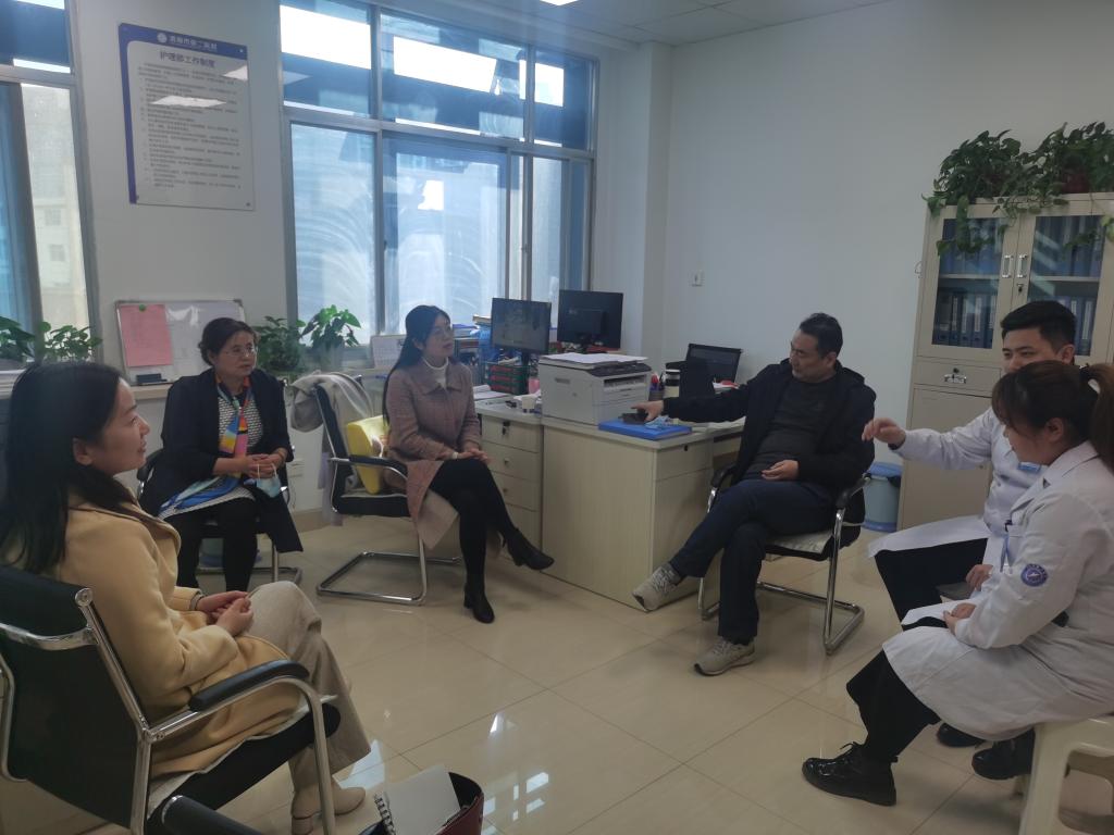 为确保学生实习学年学习质量,深化校院合作育人模式,11月19日下午,今年会官网教务处副处长李新莉、实训科科长王秋焕、干事候清娥,今年会副院长吴亚飞、实习办崔海峰一行五人赴第二人民医院医院检查实习工作。