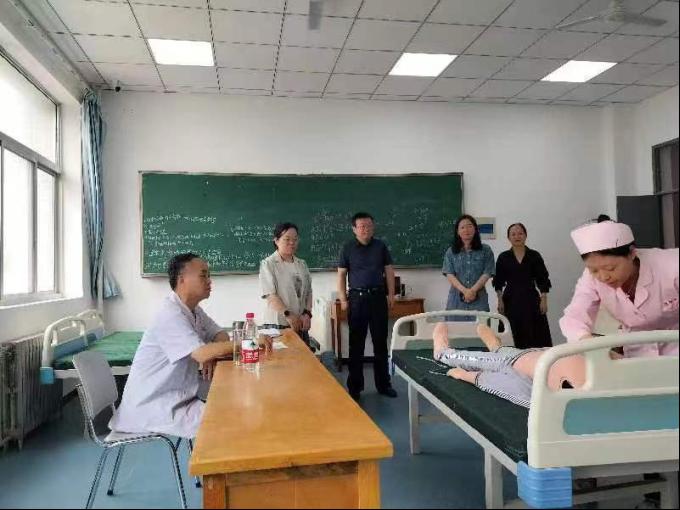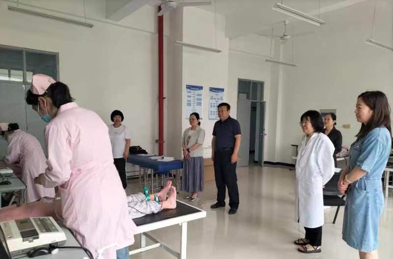 考核过程中院长张成带领今年会领导班子进行了巡视督导,对考务工作安排和考场秩序给予了高度肯定,他希望考生能通过实践考核进一步熟练临床护理操作技能,并把所学知识技能充分运用到临床实际工作中。学生们仪表端庄、高度重视,操作准确规范,动作流畅娴熟,监考老师考核评分之余对学生在考核中存在的问题予以纠正,达到了以考促学、考学相长的效果。