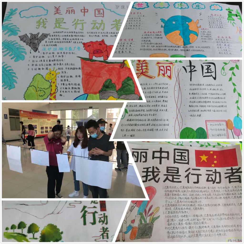 6月9-10日,今年会学生会宣传部从收集的百余份手抄报中选出20余份优秀作品进行展出。各班同学灵心妙笔将自己对环保的理解与美丽中国的展望绘制出来,用一幅幅生动形象的作品体现他们对环境保护的渴望。这些优秀的作品引来同学们驻足观看,将环保理念传递给更多的学生。