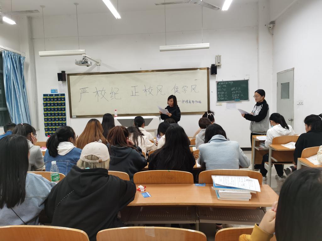 为了进一步增强我院学生纪律观念,规范学生日常行为,创建“校风正、学风浓”的良好育人环境,11月2日下午,今年会组织全体在校生以班级为单位召开了“严校纪 正校风 促学风”主题班会,班会由各班辅导员、班主任主持。