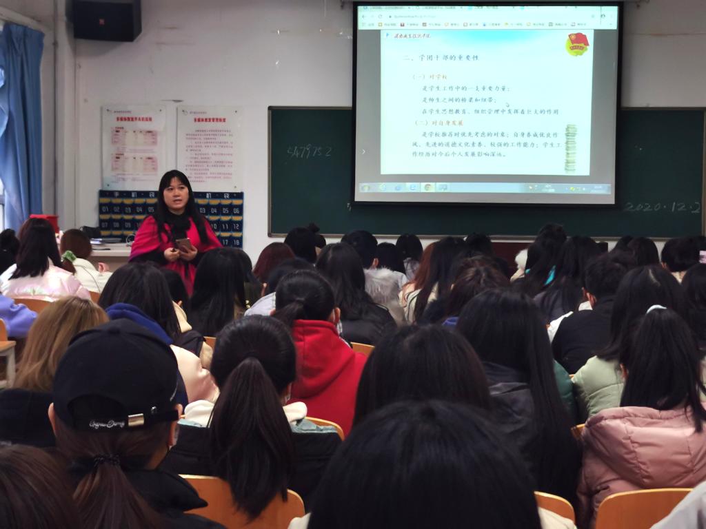 为进一步规范学生管理工作,提升学生干部工作水平,12月2日下午,今年会在公共教学楼南楼105室开展了“学团干部培训大会”。我院党总支副书记马淑红,团总支书记白小萌,学生管理科科长李博,辅导员李潮,学生会、总支各部门负责人及70余名学生代表参加了大会。大会由团总支书记白小萌主持。
