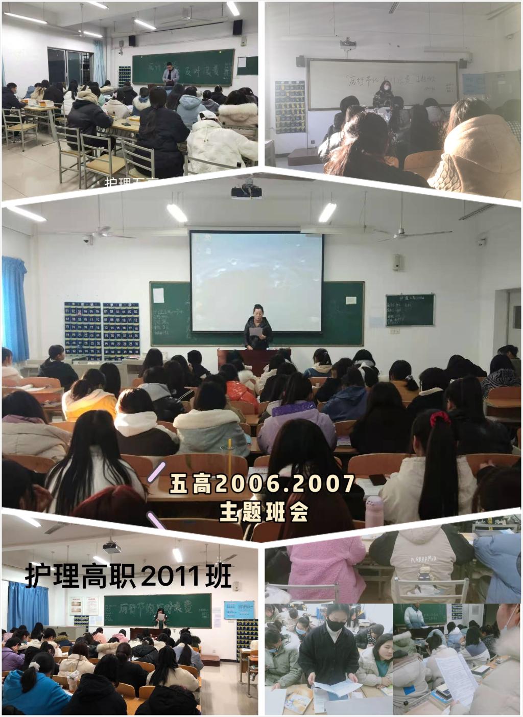 各班辅导员、班主任带领班级学生学习了我院《关于召开“厉行节约”主题班会的通知》,以PPT、视频、图片浏览、讨论等形式召开了主题班会。护理五高2006、2007班班主任白小萌带领学生学习了习近平总书记对制止餐饮浪费行为培养节约习惯作出的重要指示精神;带领学生观看了《一粒米的世界》《一粥一饭不易且重大》等视频。她和同学们讨论了厉行节约的方法。她希望班级学生立即行动起来,从我做起,从现在做起,从一点一滴做起,让勤俭节约成为校园的一道风景线。护理高职2004班辅导员李潮向同学介绍了国际出现的粮食安全问题,代领学生浏览了校园铺张浪费的图片,分享了我国伟大领袖毛泽东和周恩来总理勤俭节约的事迹,让学生认识到大学校园铺张浪费的普遍性和严重性,深刻体会到勤俭节约的重要性。他要求学生从自身做起,用实际行动制止铺张浪费行为,同各种铺张浪费现象作斗争。