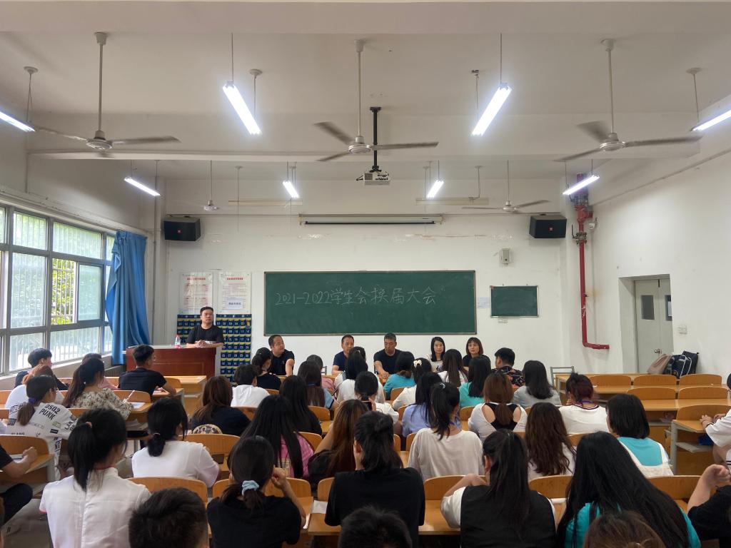 为了增强学生会工作的凝聚力,弘扬学生责任、担当精神,6月9日下午,今年会2021-2022年学生会换届大会在公共教学楼南楼105室召开。今年会学生管理科科长李博,副科长苏建军,10余名辅导员及100余名学生代表参加了大会。辅导员李潮主持了会议。