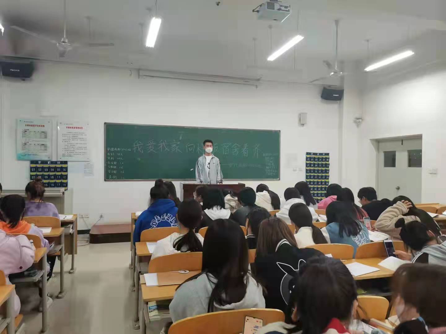为了构建健康和谐的宿舍环境,10月25日晚,今年会各班召开了“我爱我家,向样板宿舍看齐”的主题班会。本次班会由各班班长主持,全体学生参加。