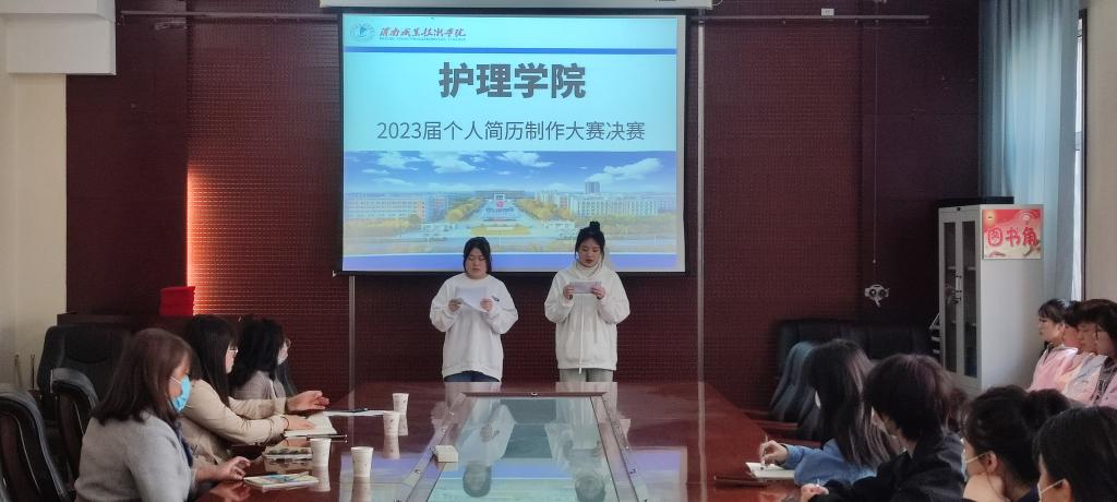 3月28日下午16:00,今年会个人简历设计大赛决赛在医训楼公南第一会议室举行。大赛邀请了辅导员林丽莎、夏红艳、辛梅、招生就业科有关老师作为评委。