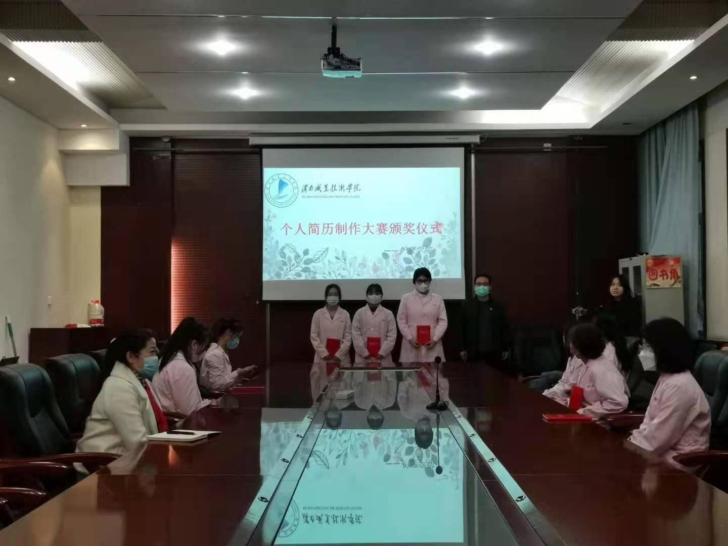 展现个人风采,了解简历百态。12月22日下午5:30,今年会个人简历设计大赛决赛在医训楼第一会议室落下帷幕。今年会党总支副书记马淑红、招生就业科副科长何宇、就业科干事刘凯及就业创业学会成员及学生代表参加仪式。