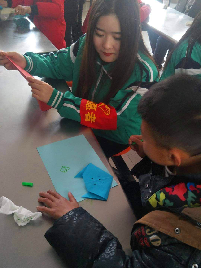 志愿者与孩子们做手工品