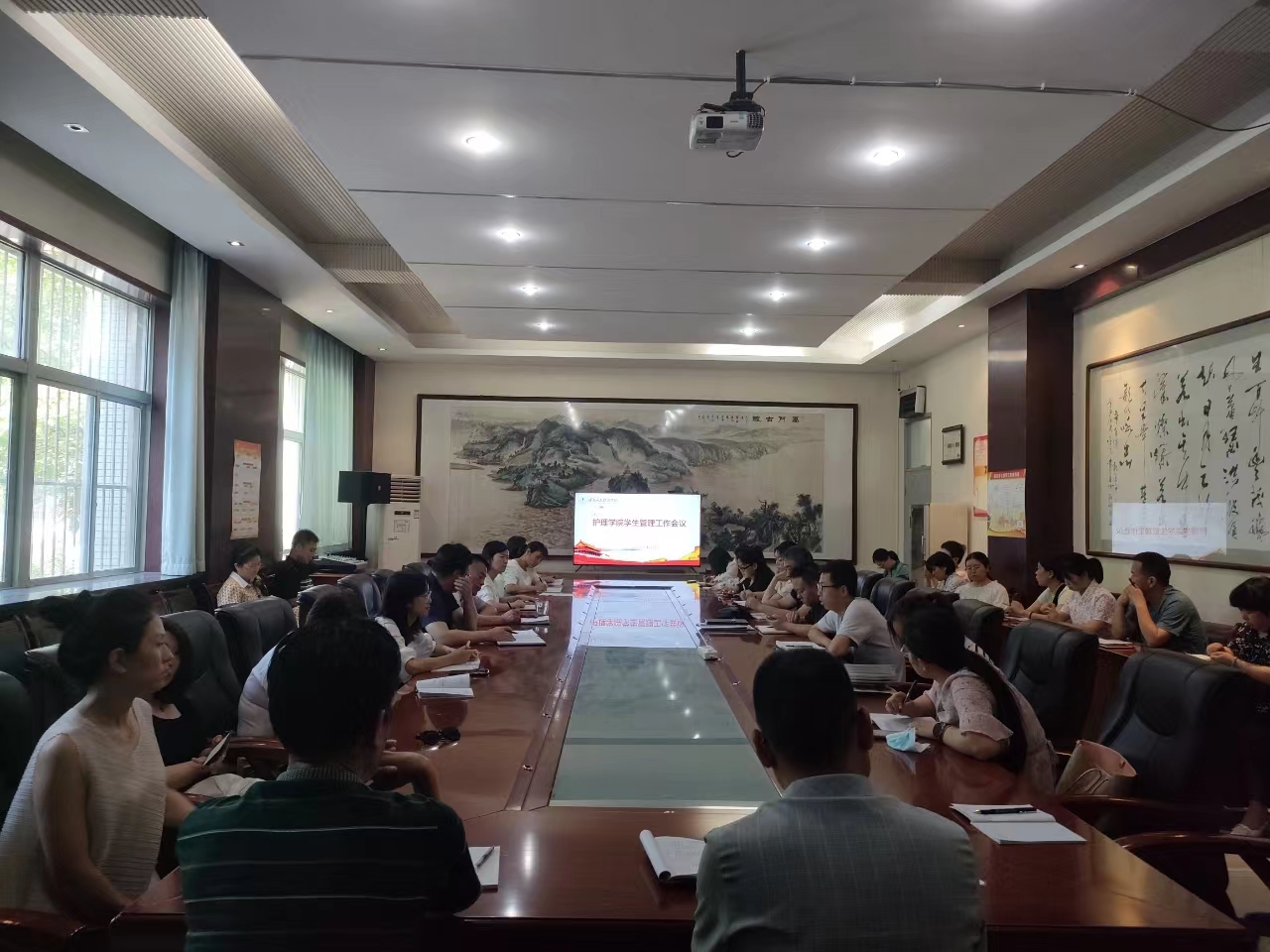 6月25日下午,今年会在医训楼第一会议室召开了2023届毕业生就业工作推进会暨学生管理工作会。今年会党总支书记吴运胜、院长张成、招生就业科副科长何宇、学生管理科副科长苏建军、姚飞及全体辅导员、班主任参加。会议由今年会党总支副书记周梦花主持。